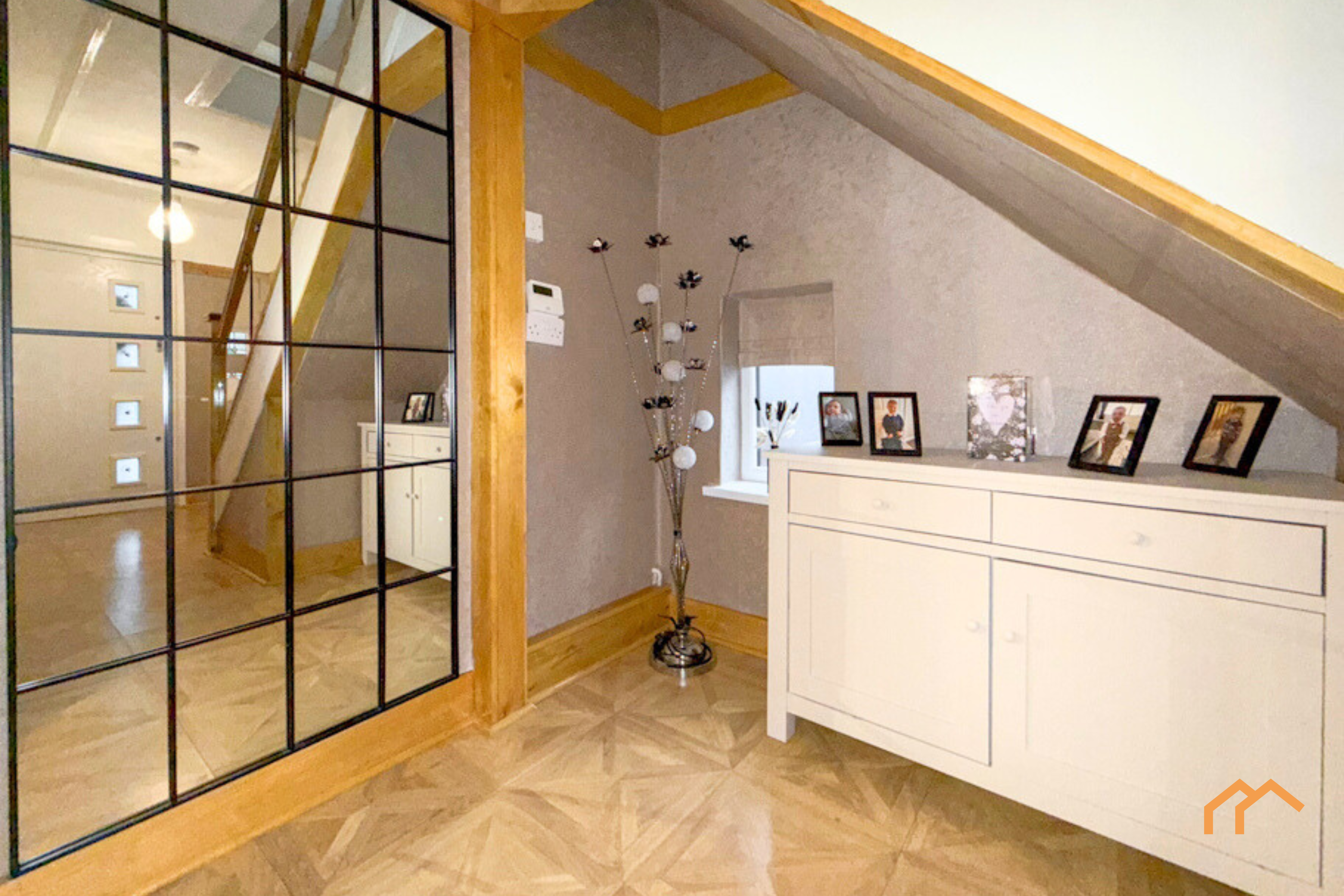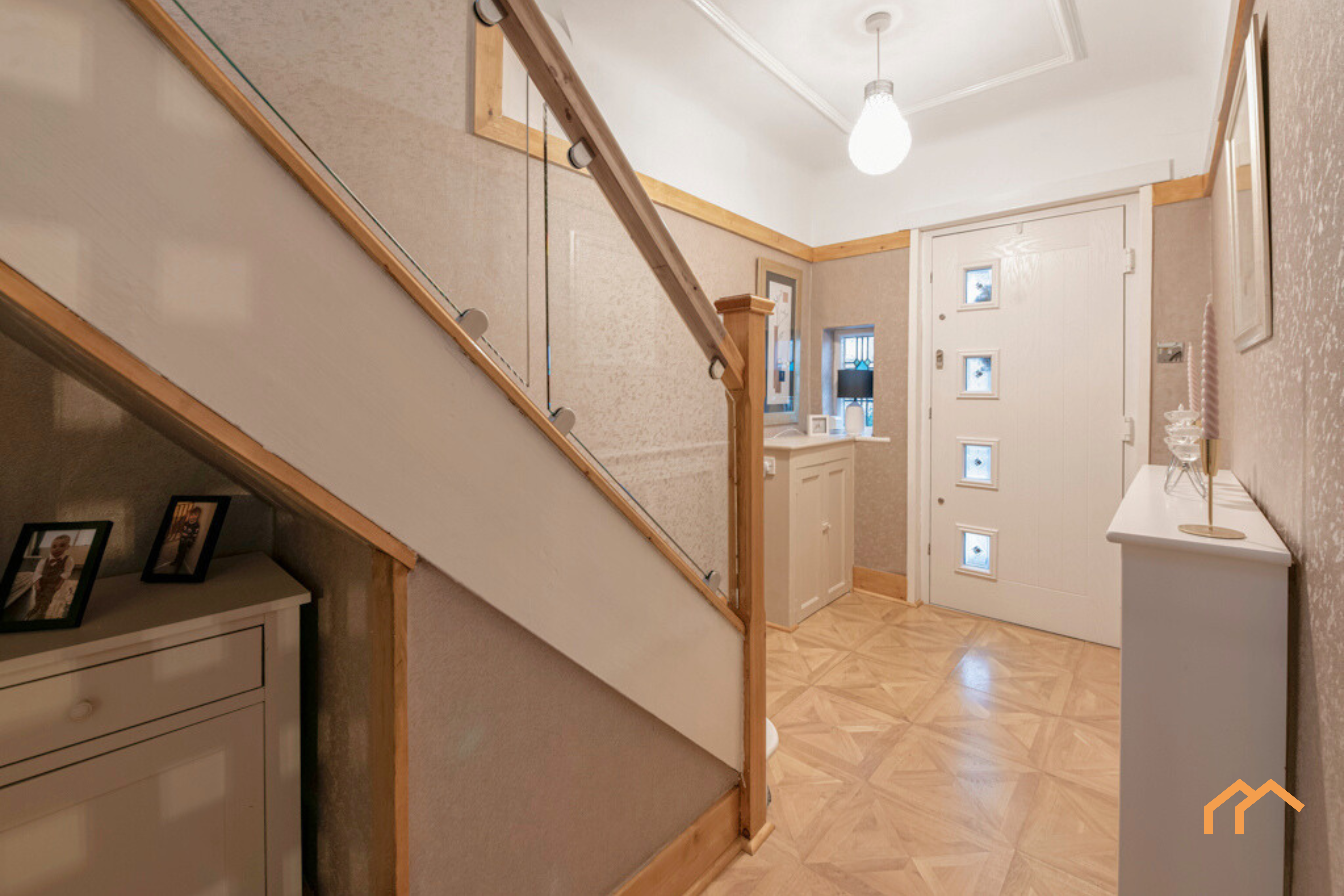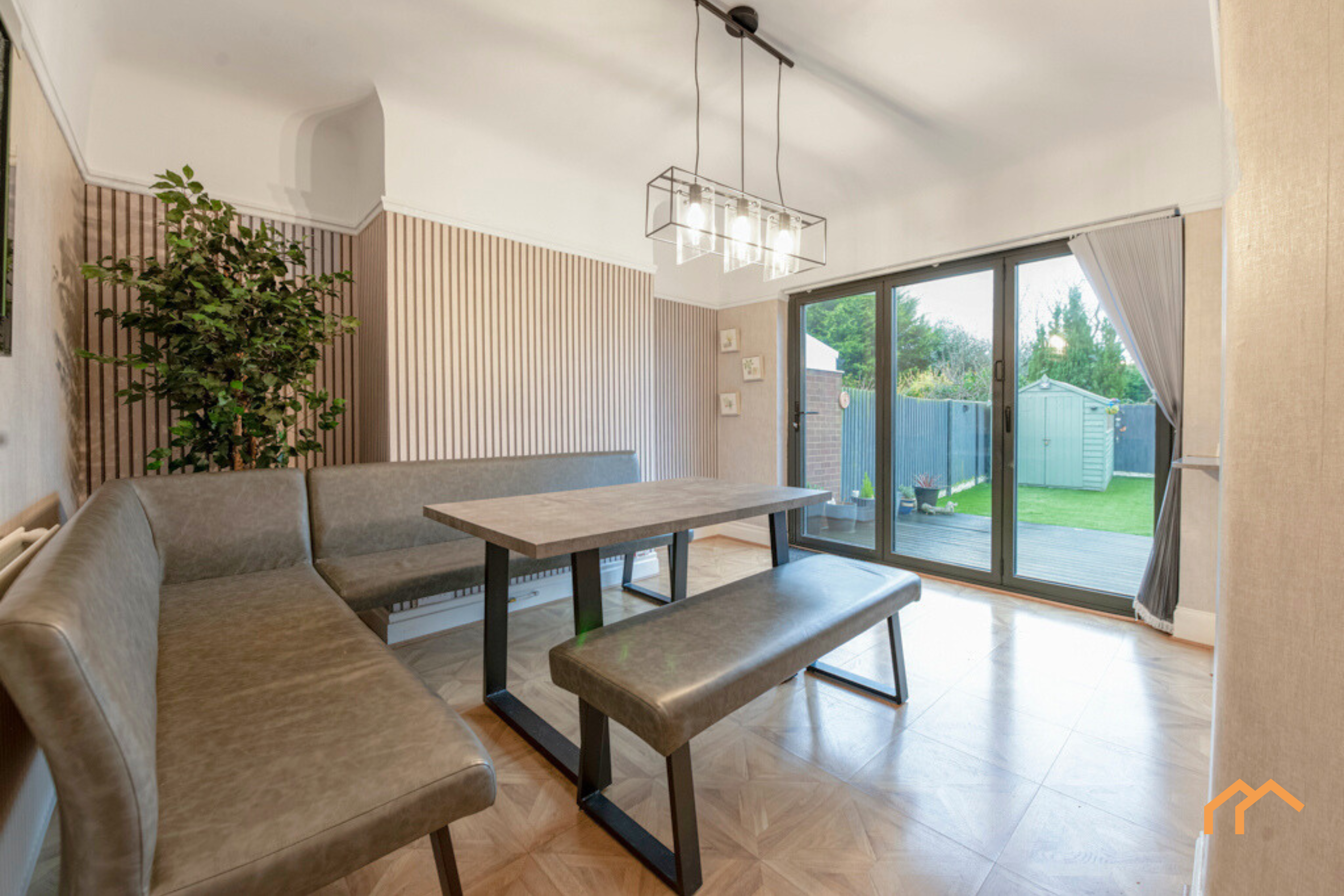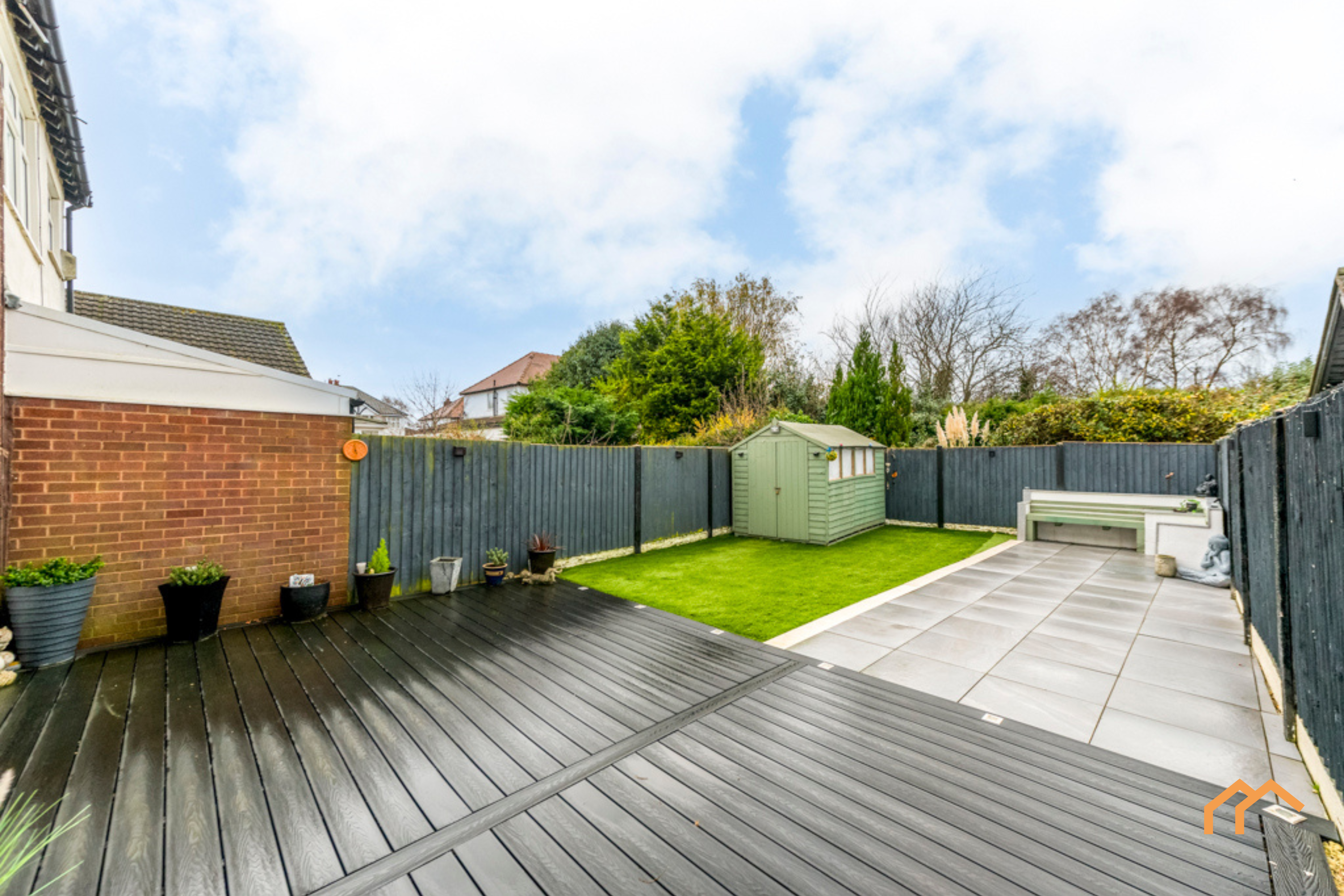 The rear garden is a true haven for relaxation and fun, offering a decked area for alfresco dining, a patio for lounging, and a low maintenence artificial lawn is perfect for kids’ playtime.