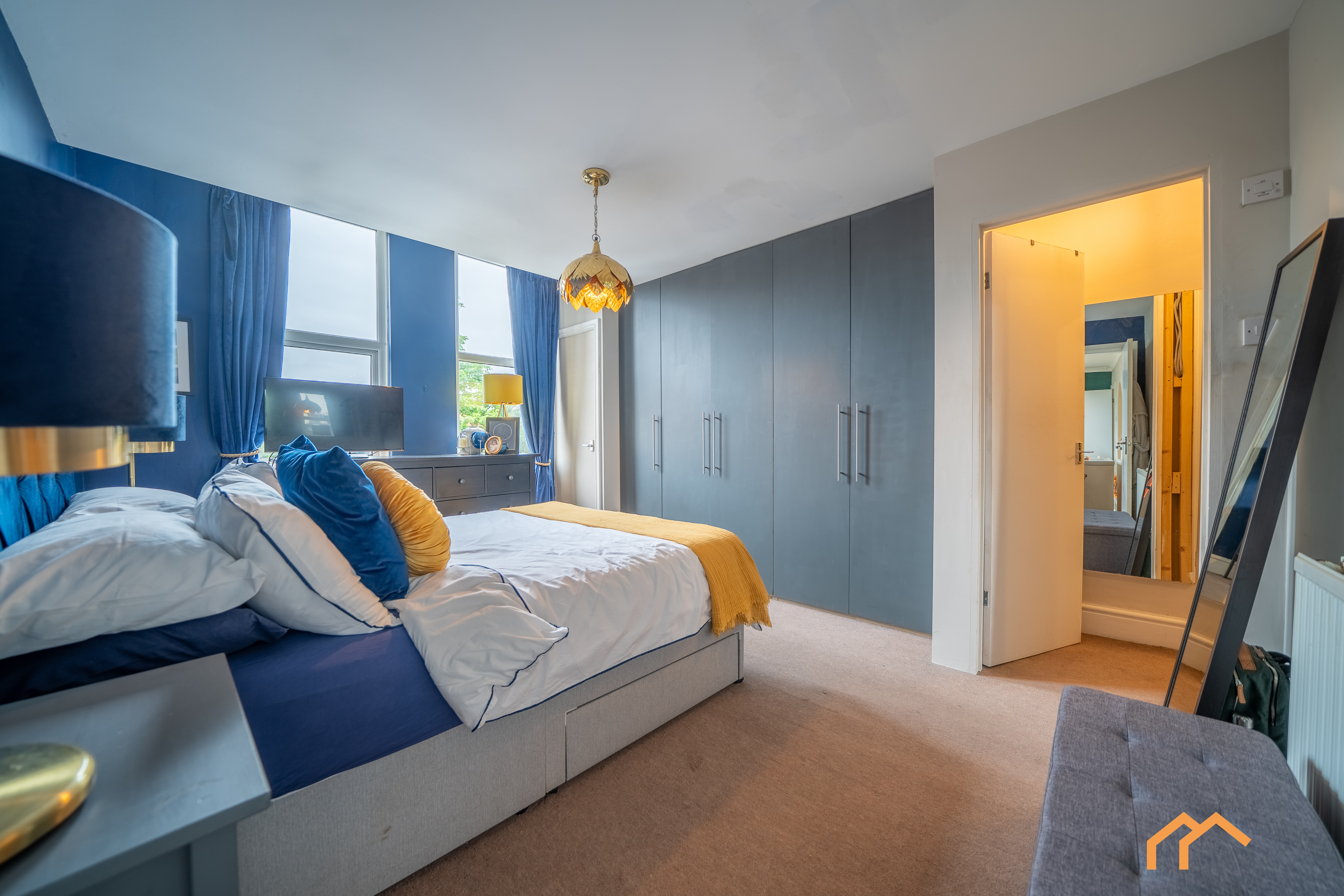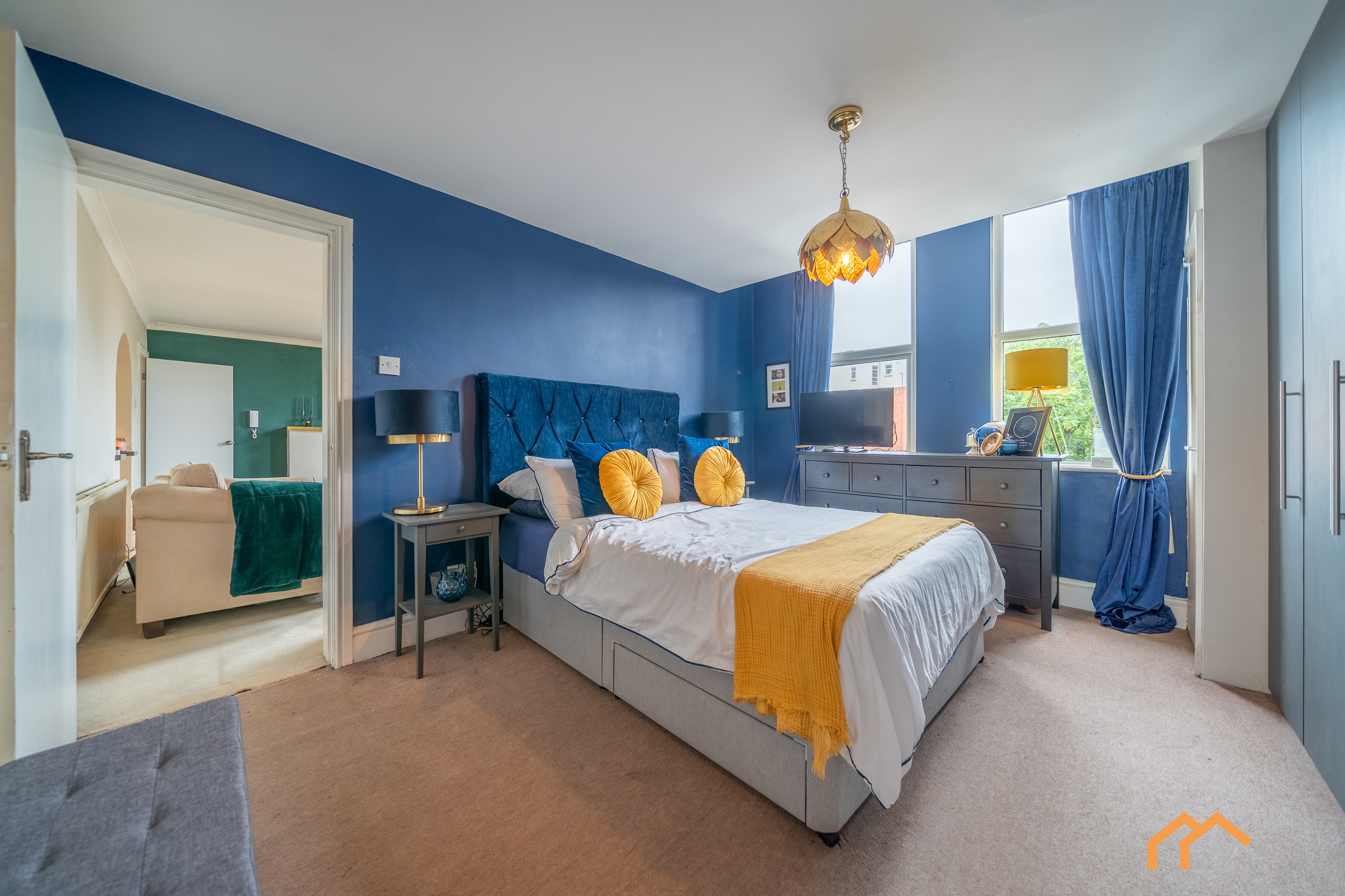 The large bedroom benefits from built-in wardrobes and is well-lit with natural light from the generous double-glazed windows. The bedroom is again tastefully decorated and provides access to the bathroom.