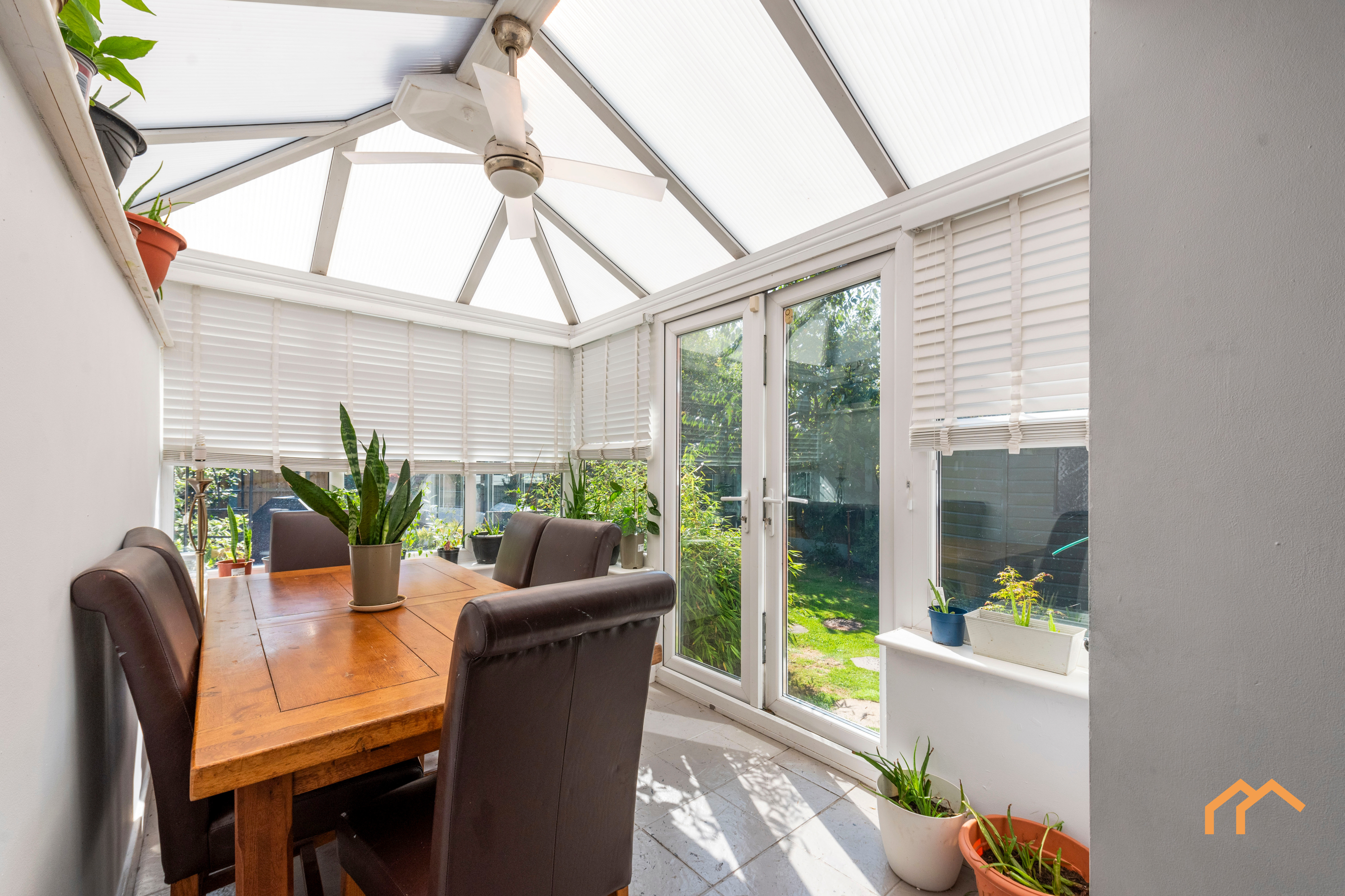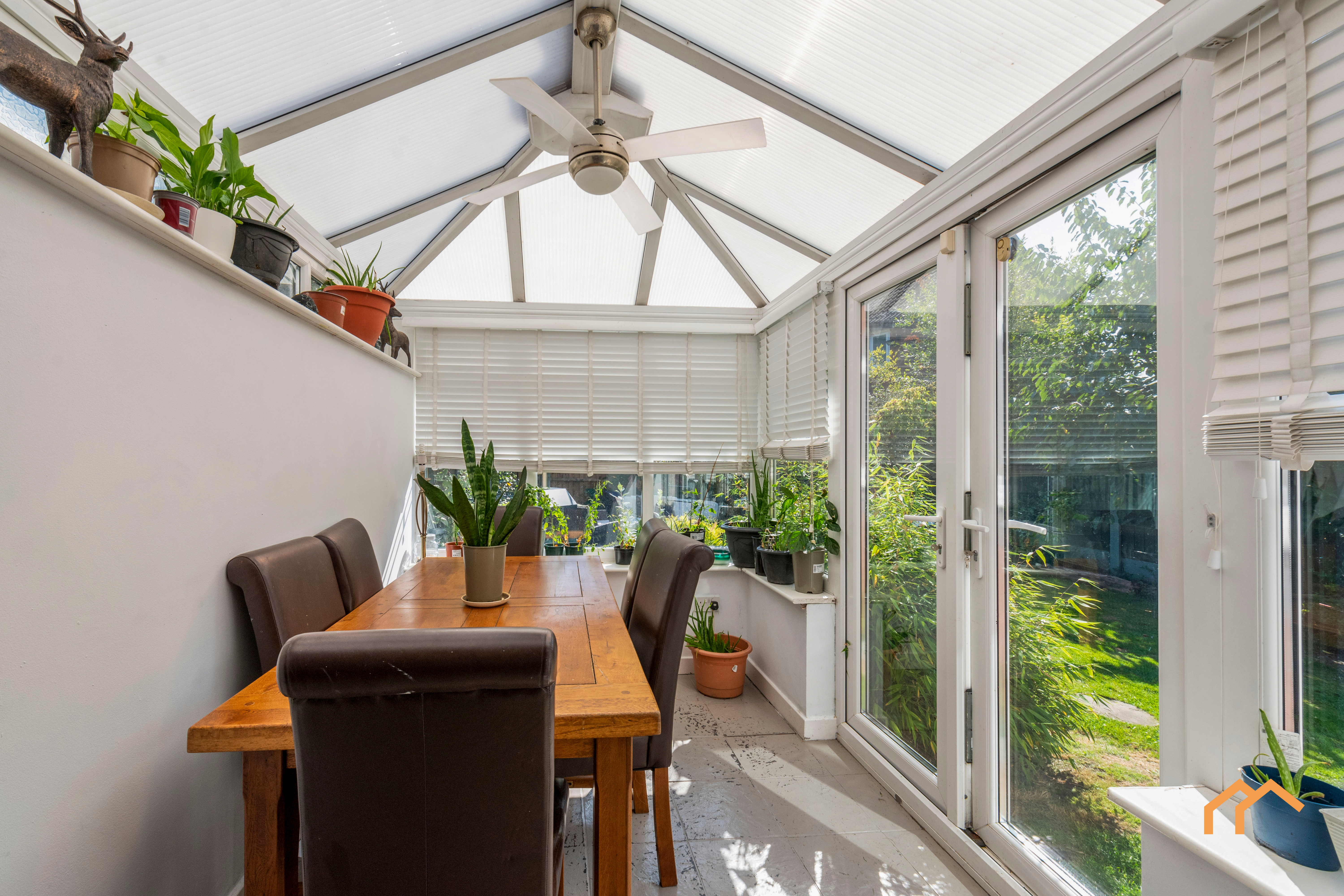 The conservatory provides a view over the well-kept garden and is currently used as a dining room. This space could also be used as an additional sitting room.