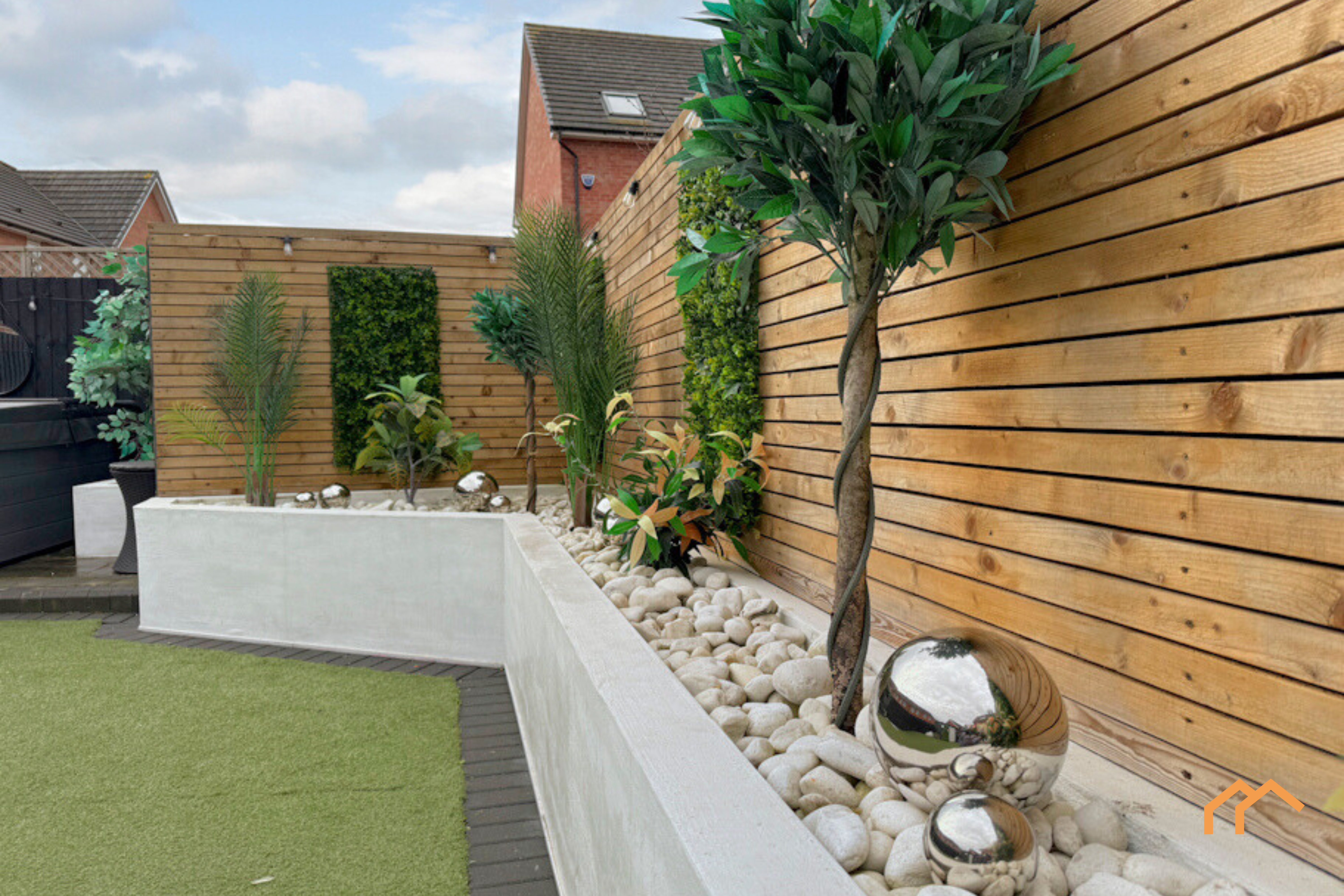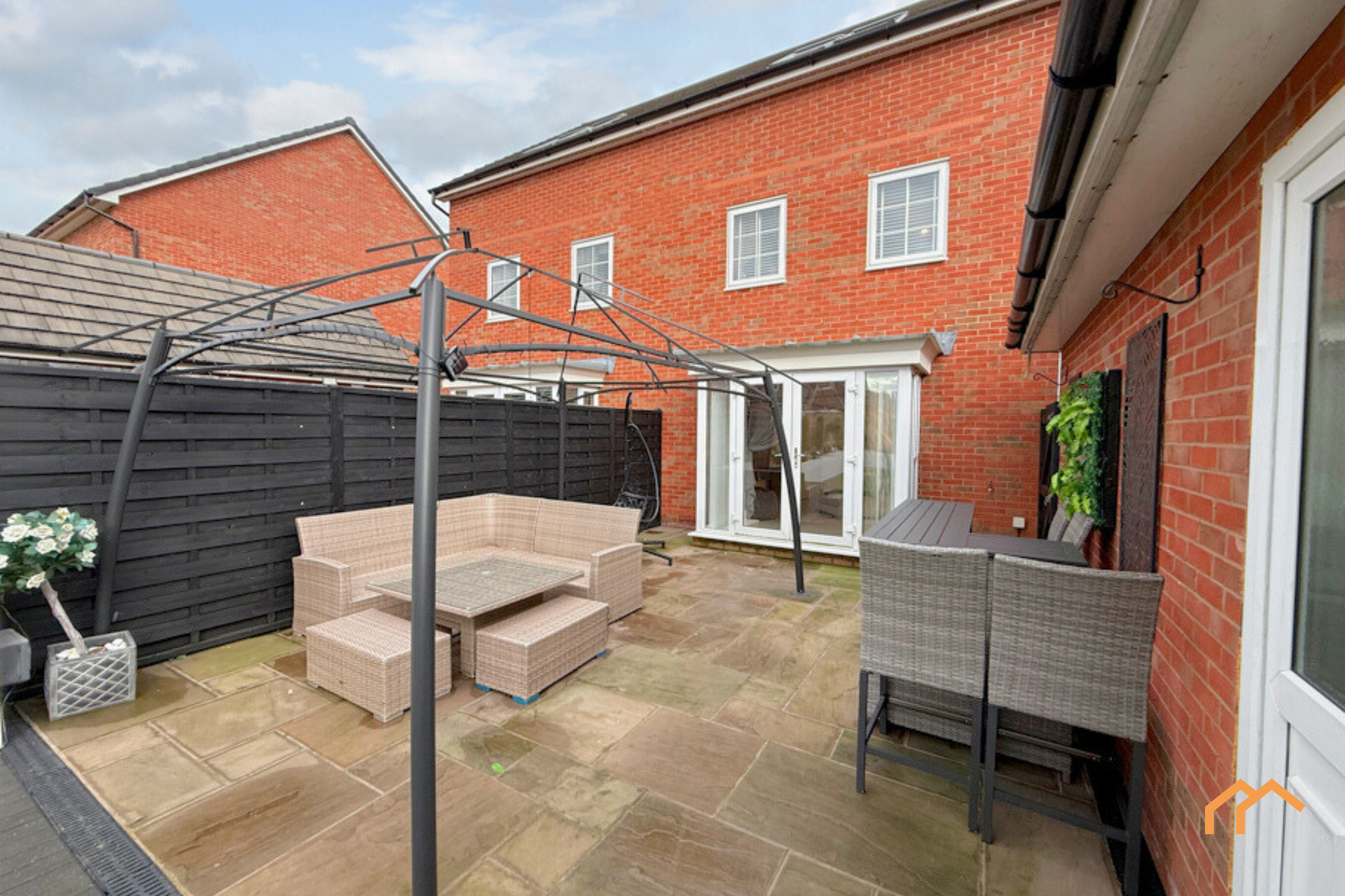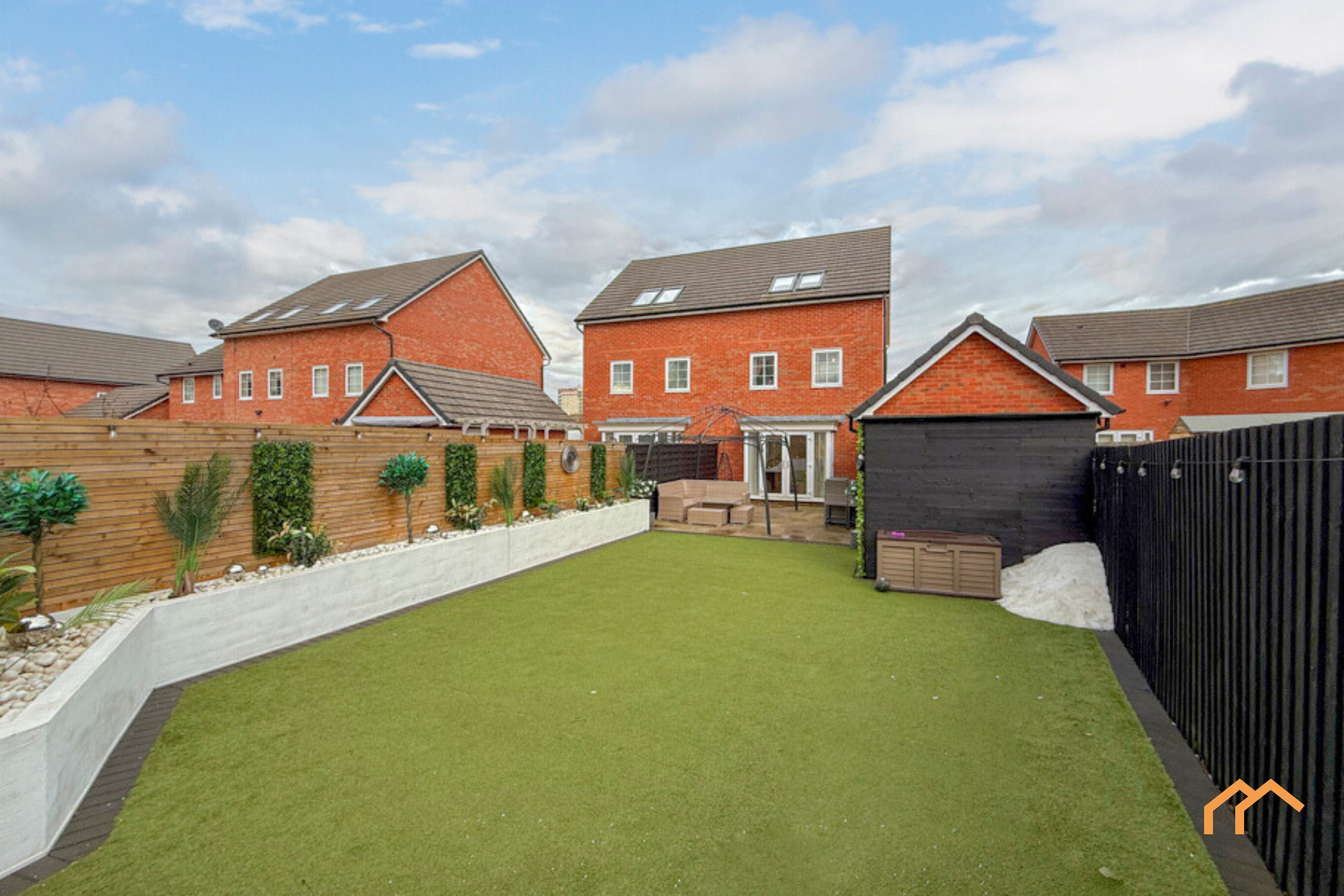 The living round features a custom built media wall, with wood panelling and built in electric fire. There are French doors out to the sunny rear garden and the the room is finished with Karndean luxury vinyl tile flooring. There is also a handy understairs cupboard, providing plenty of storage space.