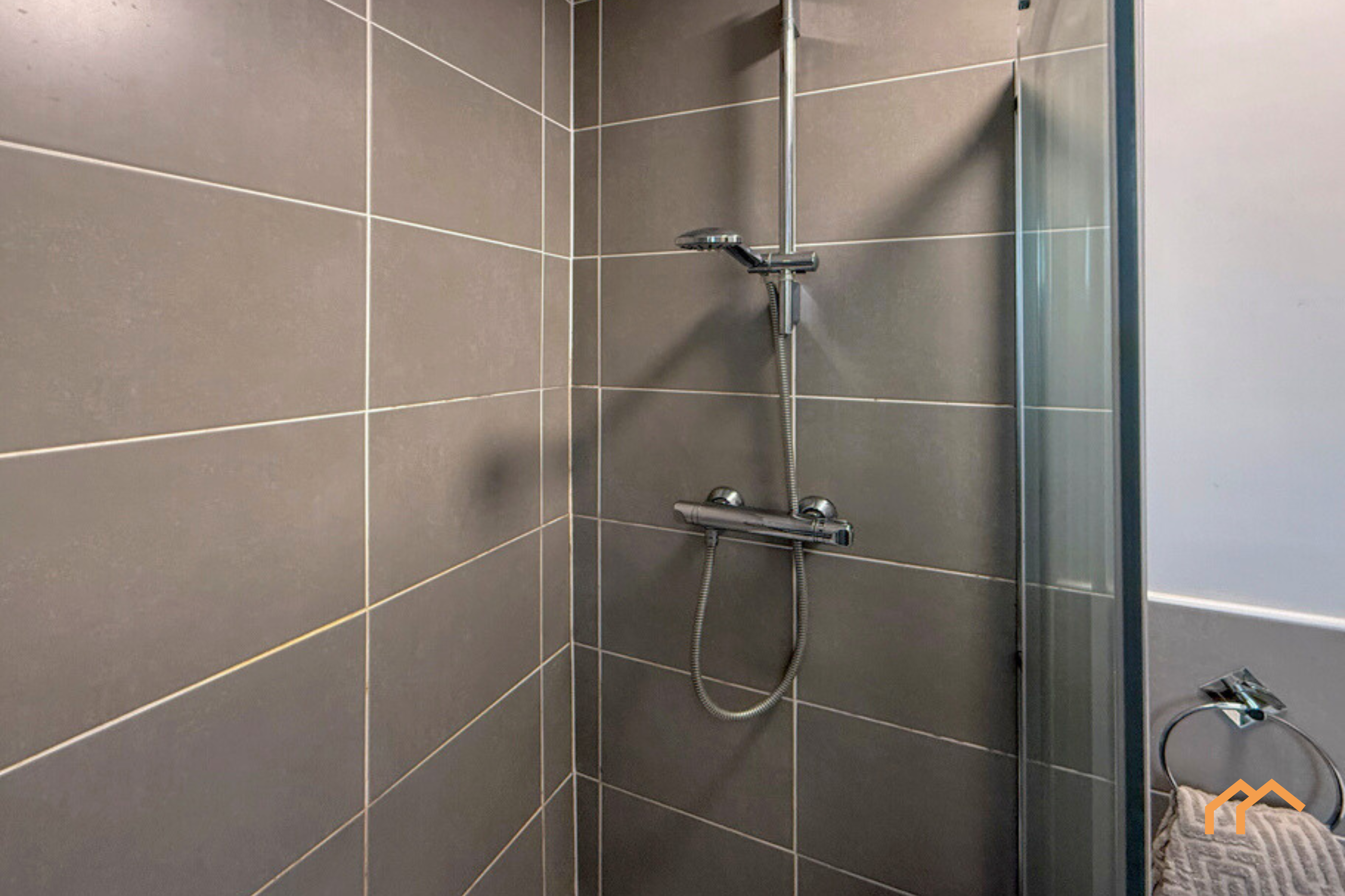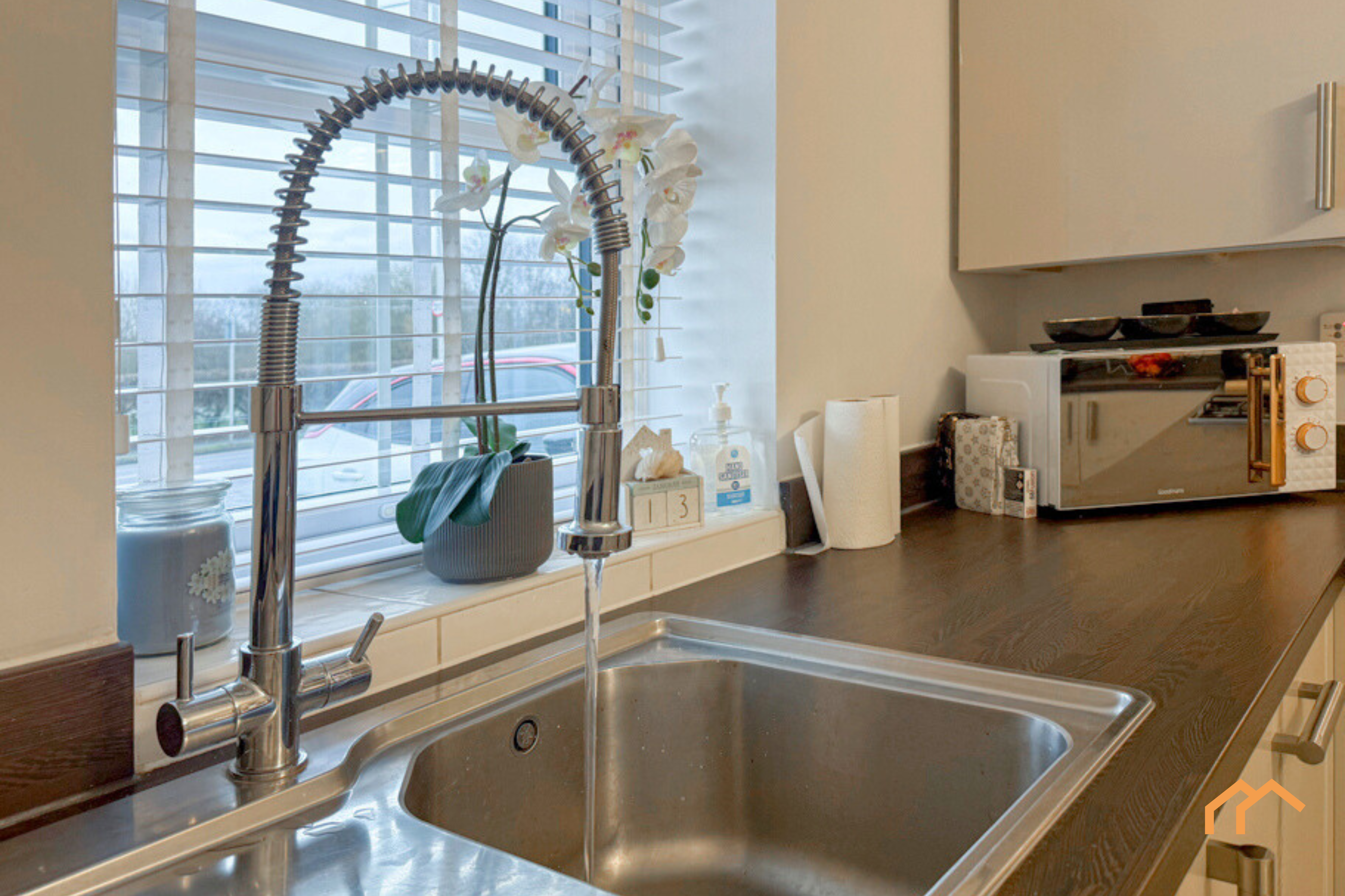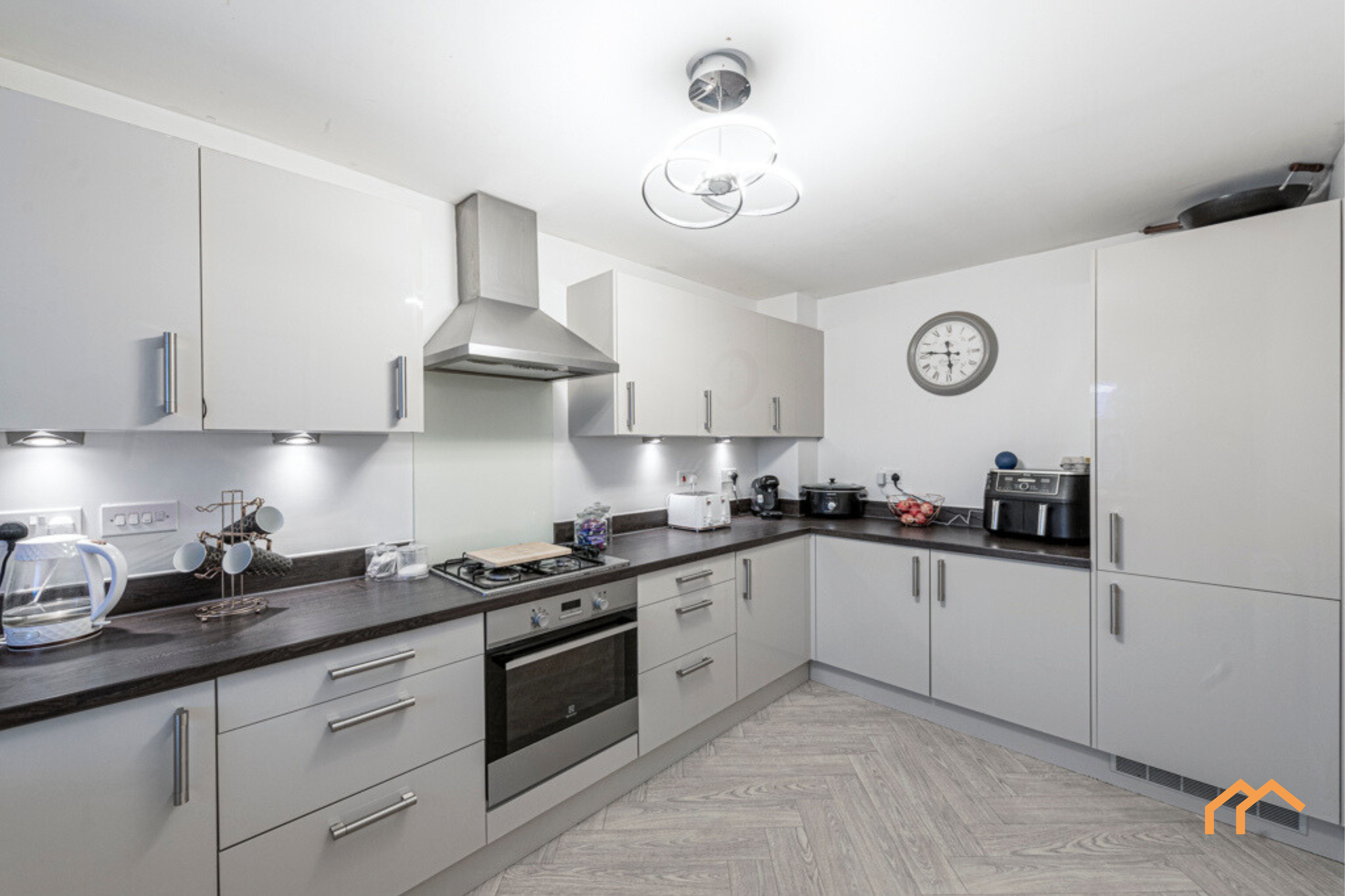Featuring an integrated fridge freezer, washing machine and dishwasher the spacious kitchen has a range of wall and floor units providing ample storage space. There is also an electric oven, gas hob and chimney-style extractor hood. The kitchen also houses the combi boiler.