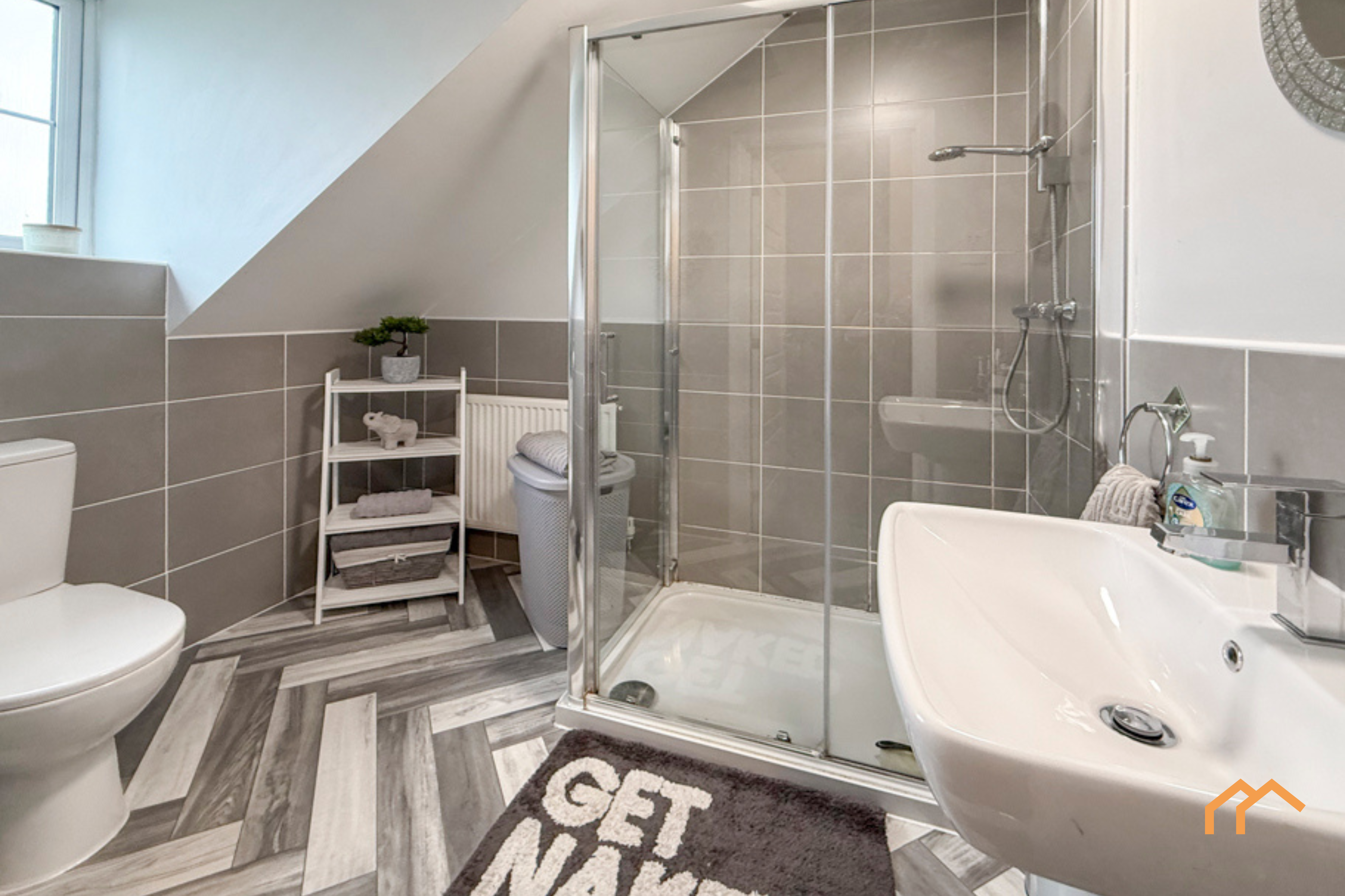 Finishing the master bedroom is the Ensuite. Featuring low level WC, a large shower cubicle and a pedestal basin.