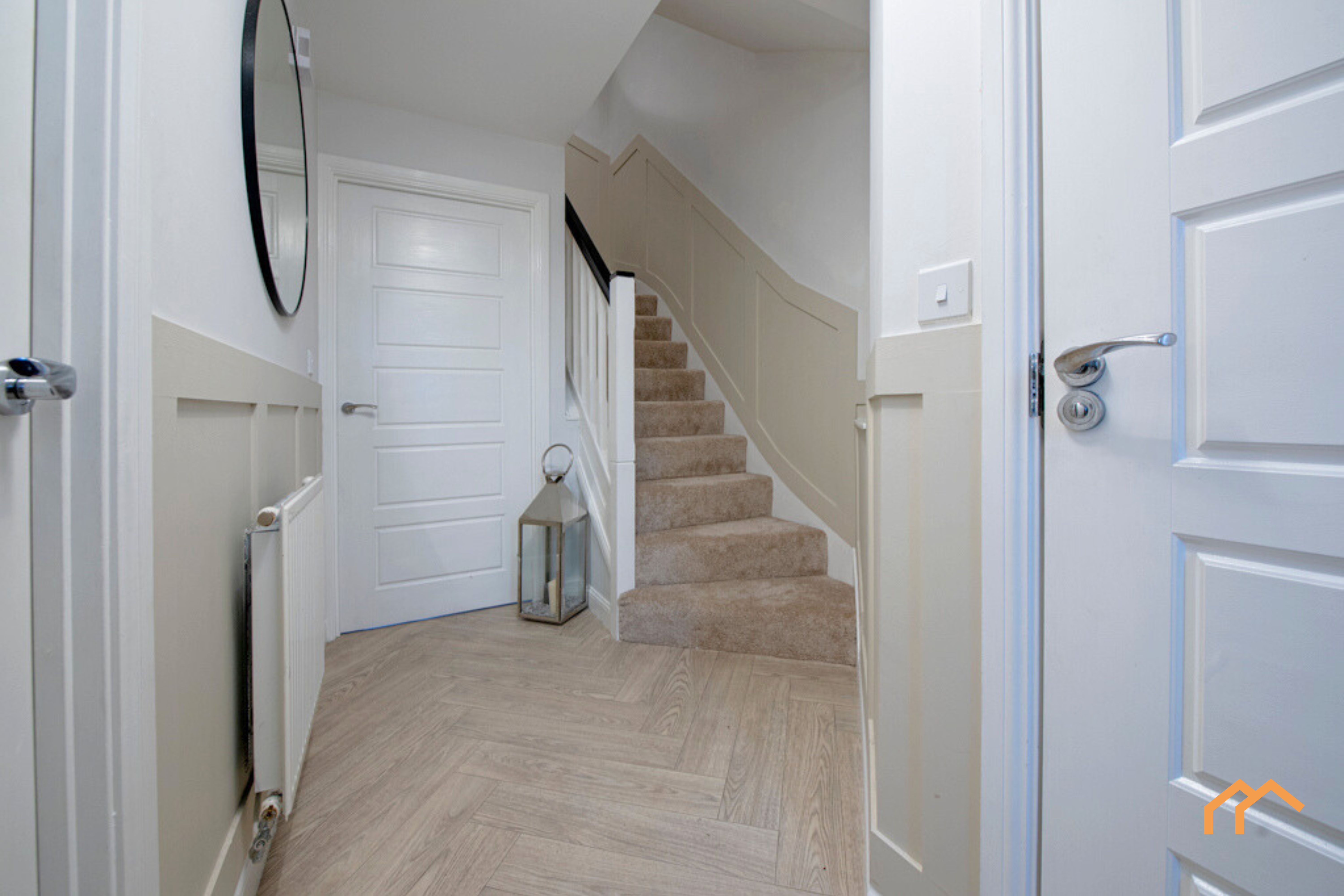 The spacious entrance hall has access to the Kitchen and Lounge, as well as the downstairs WC.