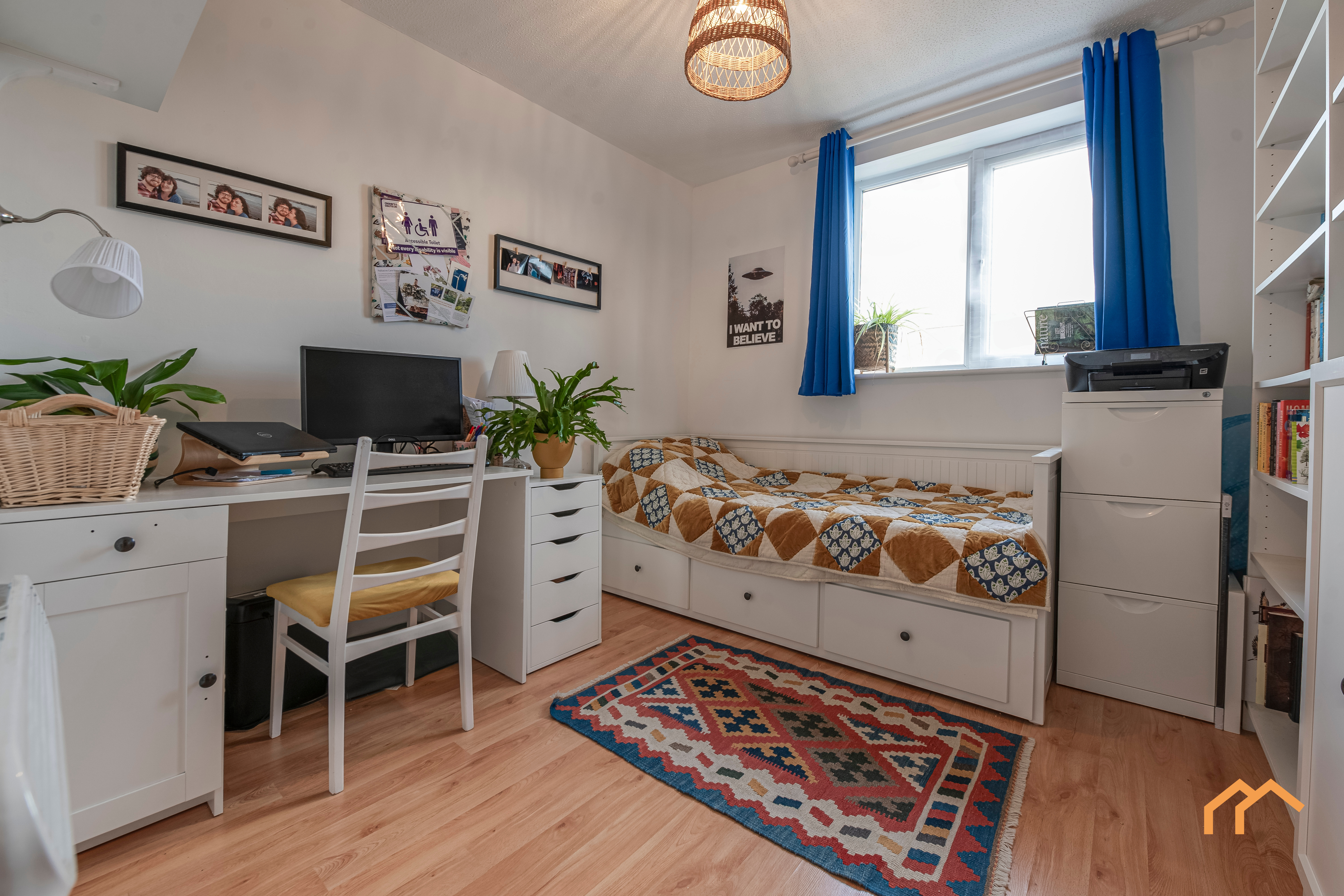 This room is currently being used as a home office with pull-out guest bed. However, it could just about squeeze a double bed in. The room is again decorated in a neutral palette and features a double glazed window and electric heater.