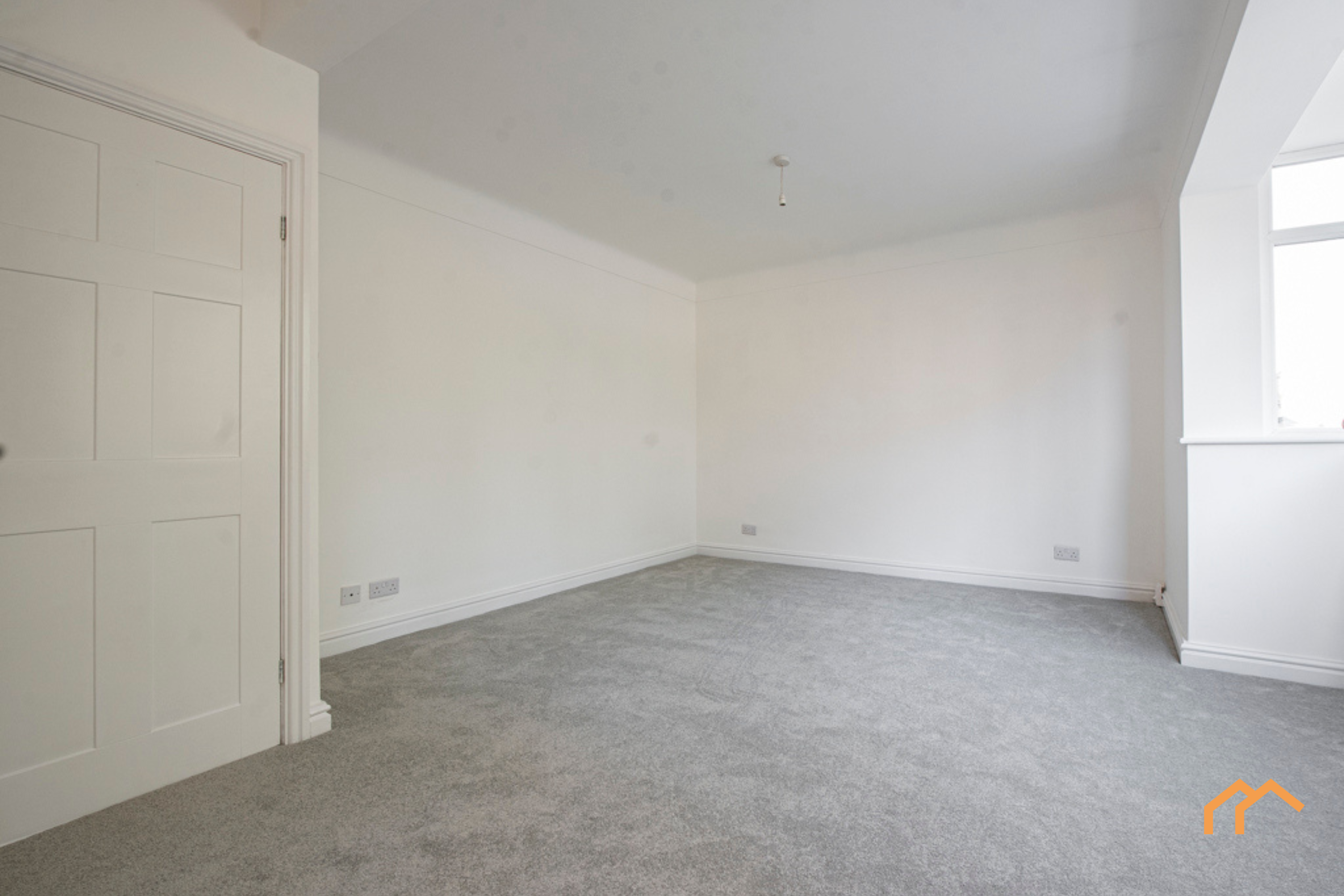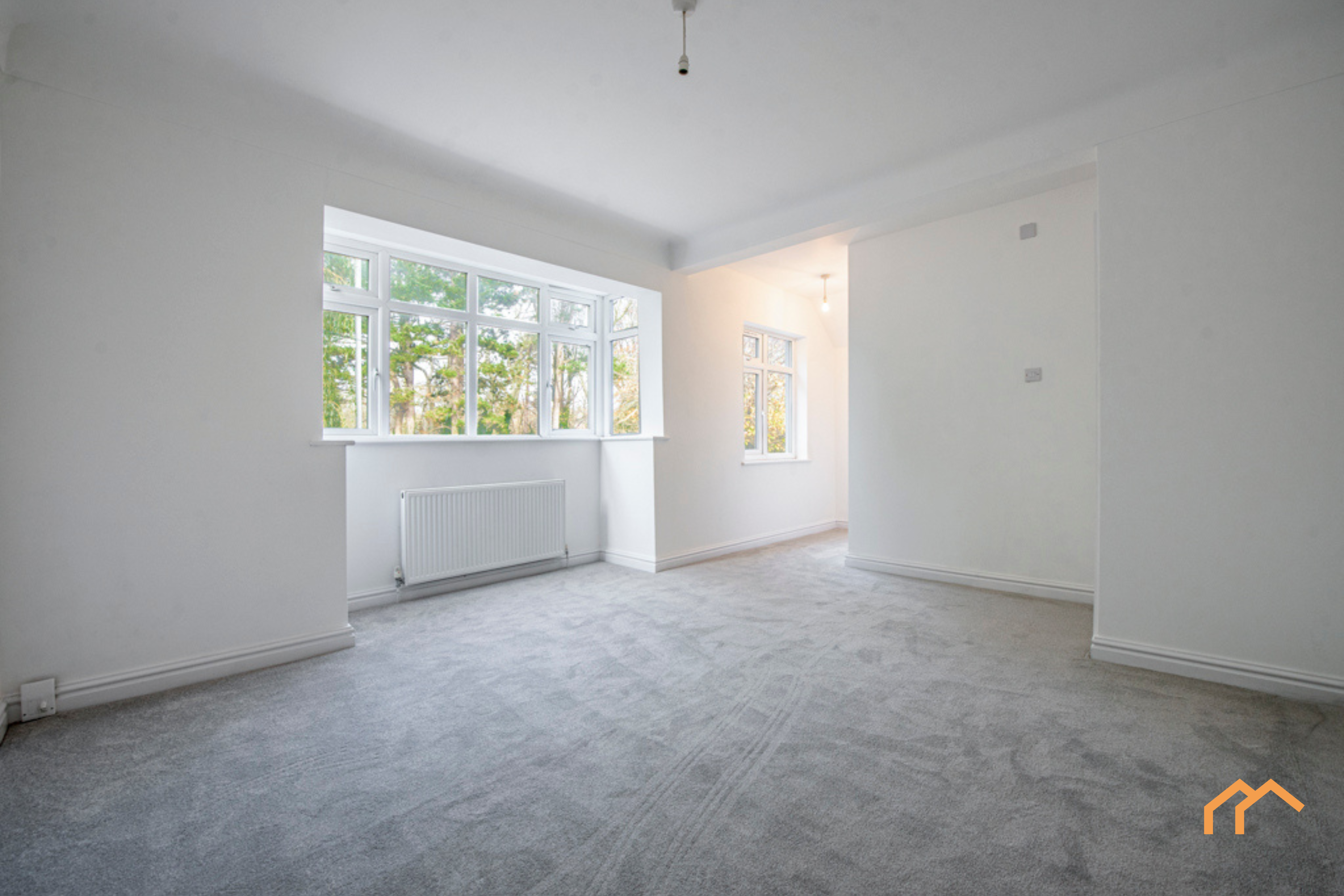 The large lounge room features a bay window with double glazing and a central heating radiator. As with the rest of the property, the room is finished with a neutral decor.