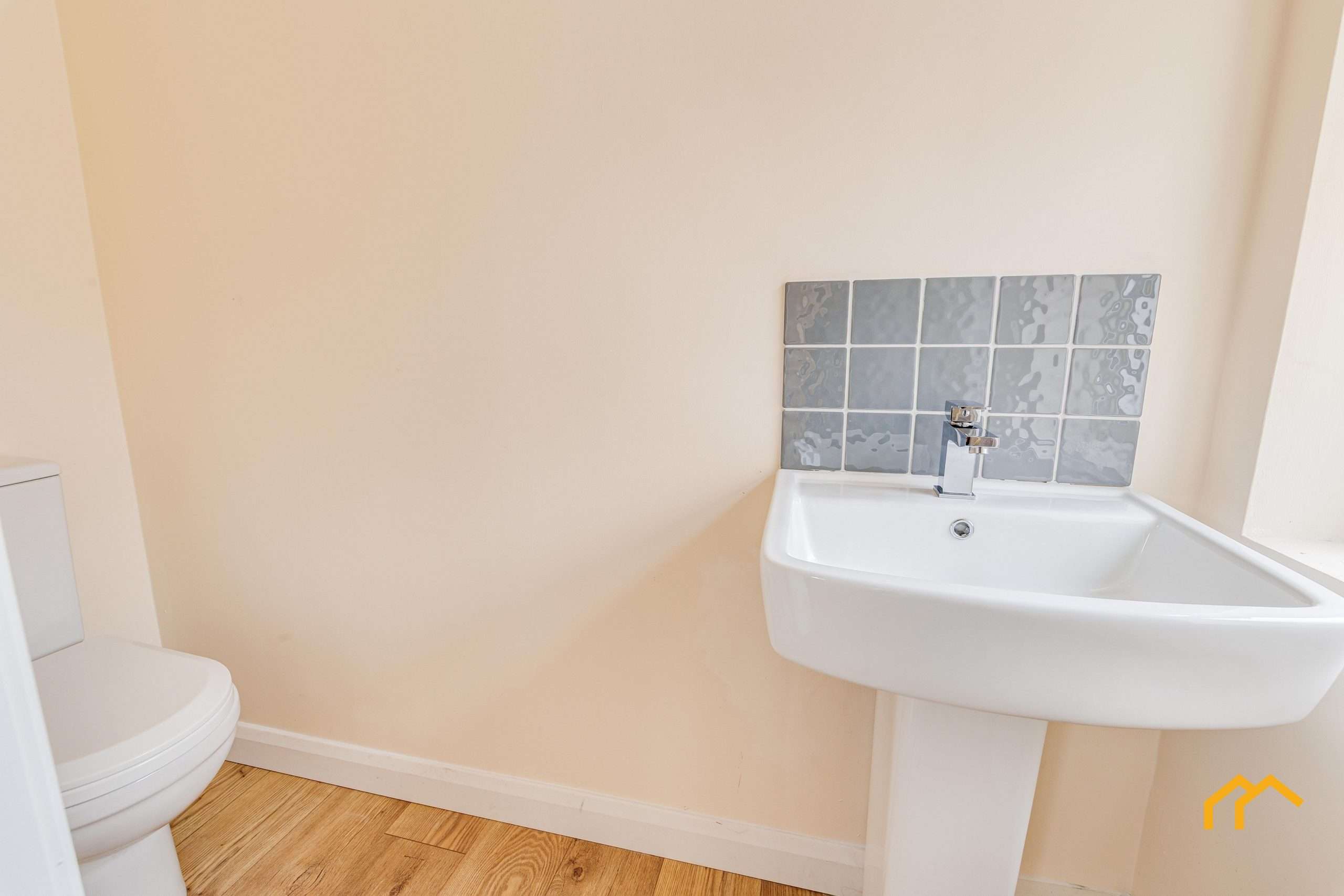 The main highlight downstairs is the impressive kitchen-diner. With bi-fold doors opening onto the south-facing garden, it truly is the heart of the home. The kitchen features stylish green cabinetry, complemented by a grey tiled splashback, and comes complete with an electric oven, hob, and extractor fan. From the kitchen-diner, you’ll find the utility room, which provides additional storage and appliance space for an integrated fridge-freezer, dishwasher, washing machine, and dryer. Completing the ground floor is a convenient WC with a low-level toilet and pedestal basin.