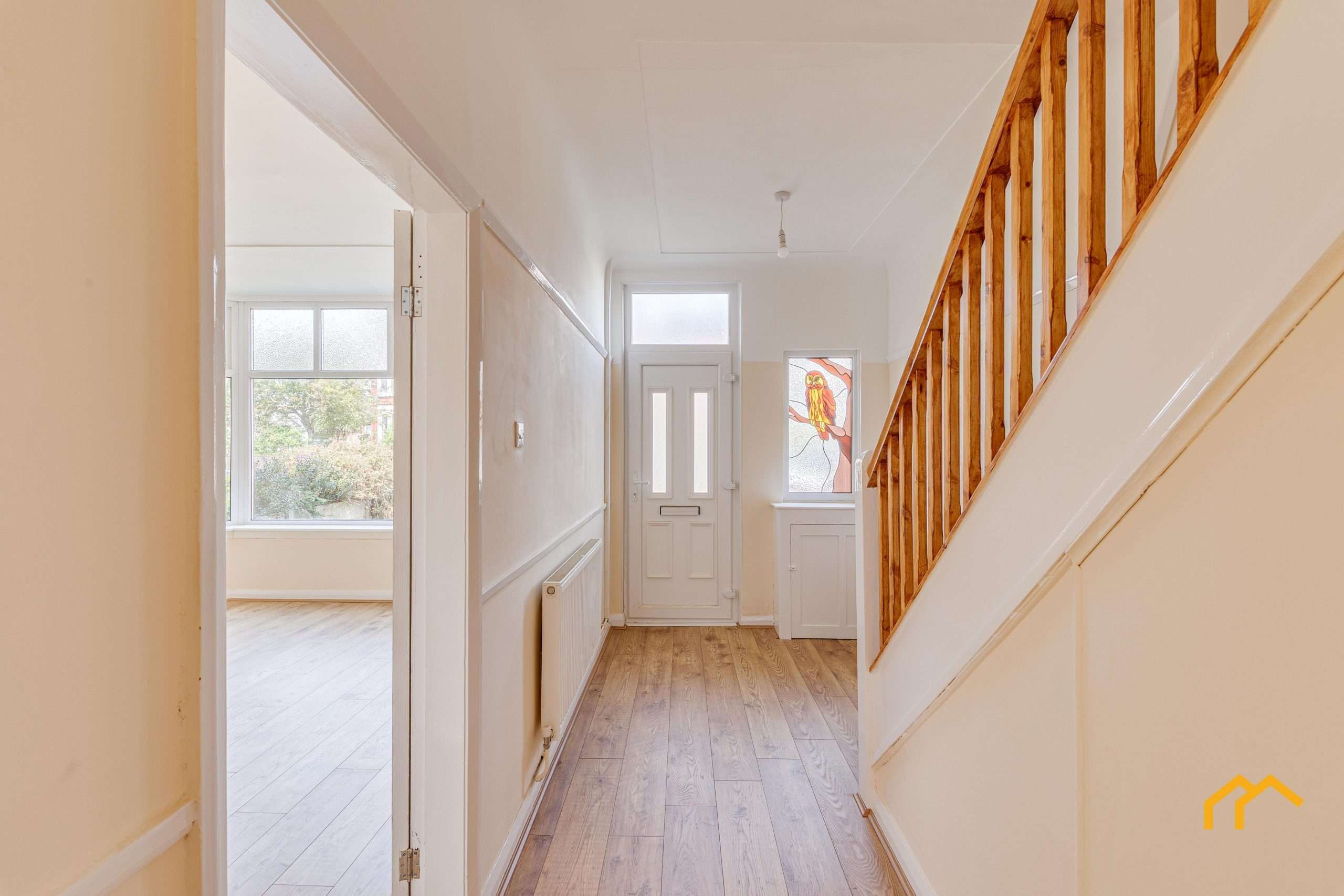 Upon entering, you are greeted by a bright and airy hallway. To the front is the lounge, featuring an electric fire and a charming bay window that floods the room with natural light. Finished in neutral décor and quality laminate flooring, this welcoming space sets the tone for the rest of the home.